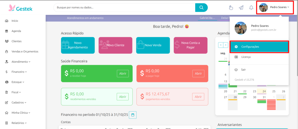 Acesse as configurações da conta, no menu superior direito da tela, onde mostra seu nome: