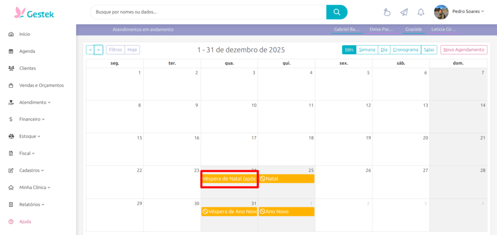 Exibir feriados na agenda / Bloquear agenda em feriados